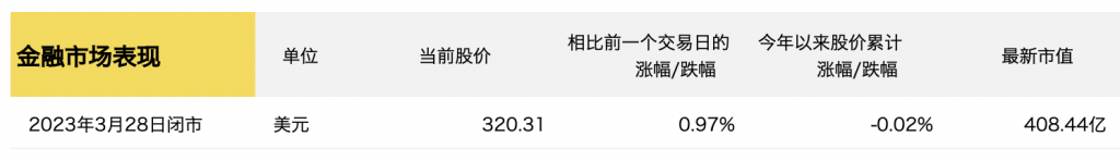 财报发布后,lululemon股价在盘后交易中上涨了约11%。截至3月28日收盘,公司股价较上一交易日上涨0.97%,最新市值约为408.44亿美元。