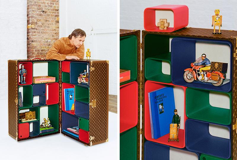 另外,LV 和 Marc Newson 的新合作也在这里亮相了,这次带来的是一款硬箱。这款 Cabinet of Curiosities 便携式珍奇柜是 LV 首款可以 180 度展开放置的硬箱,内部设有 19 个储物格,其中 8 个配有小门,这些储物格可以用不同的方式进行组装。这款硬箱限量发售 40 件,配有 LV 和 Marc Newson 的签印铭牌。