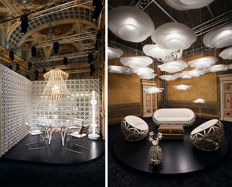 Louis Vuitton 今年的展厅设在塞尔贝罗尼宫(Palazzo Serbelloni),主要带来了 3 个项目。首先是 Objets Nomades 旅行家居系列的 11 款新品,其中包括和 Atelier Oï、Raw Edges、Atelier Biagetti、Marcel Wanders、Zanellato/Bortotto 等外部伙伴合作的单品,也有来自路易威登工作室自家的设计。