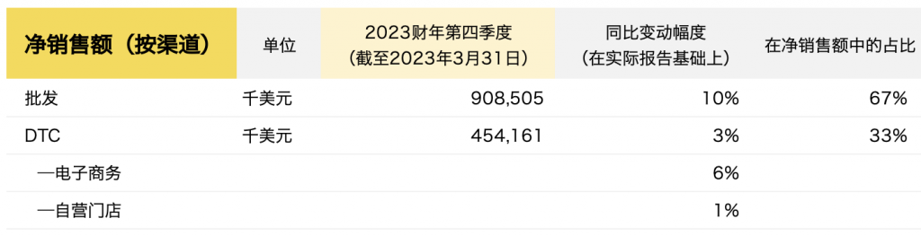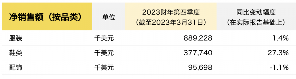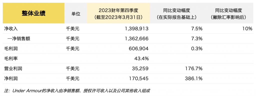 截至2023年3月31日,Under Armour第四季度的主要财务数据如下: