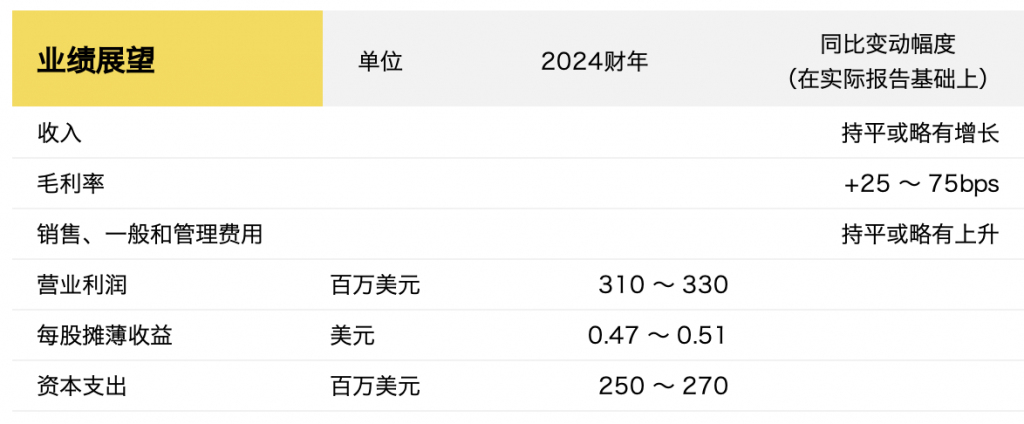 基于此,Under Armour公布了2024财年业绩预期:
