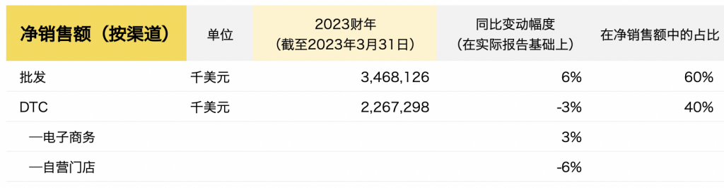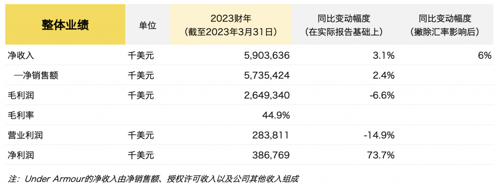 截至2023年3月31日,Under Armour2023财年的的主要财务数据如下:
