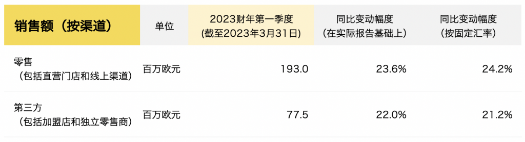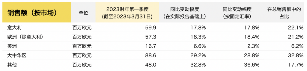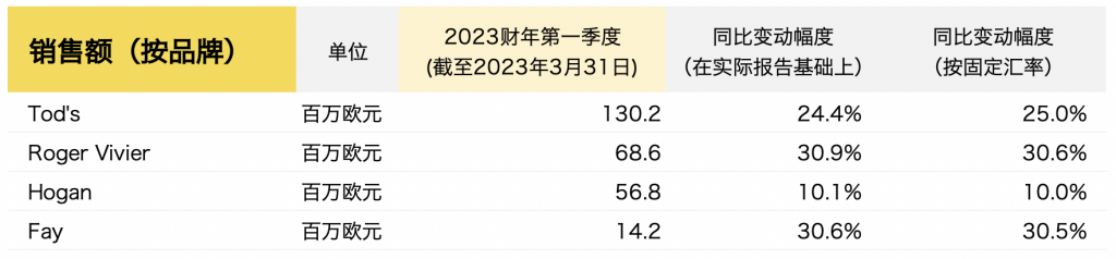 截至3月31日,Tod’s集团2023财年第一季度的主要财务数据如下: