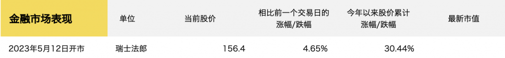 截至5月11日瑞士股市收盘,历峰集团股价为149.45瑞士法郎/股,市值857.58亿瑞士法郎。5月12日开盘后,股价增长4.65%至156.4瑞士法郎/股。