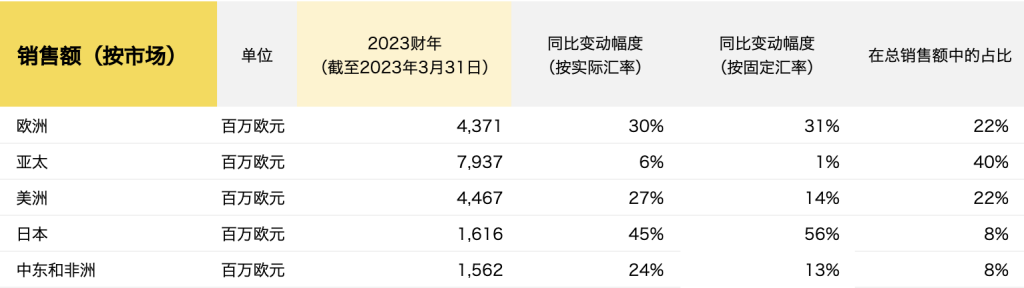 亚太地区销售额增长部分受益于中国大陆、香港和澳门在第四季度全面放开后的销售额回升,韩国和东南亚的销售额全年都有大幅增长;