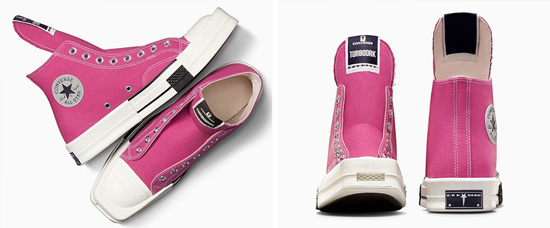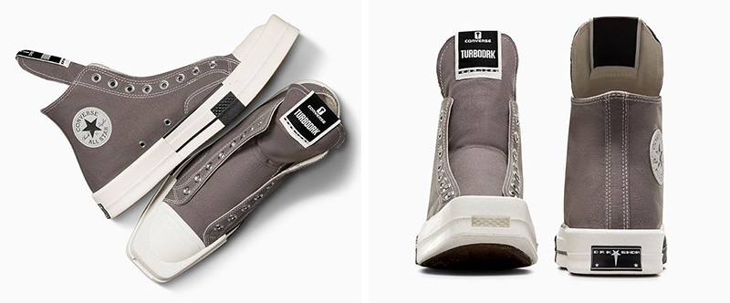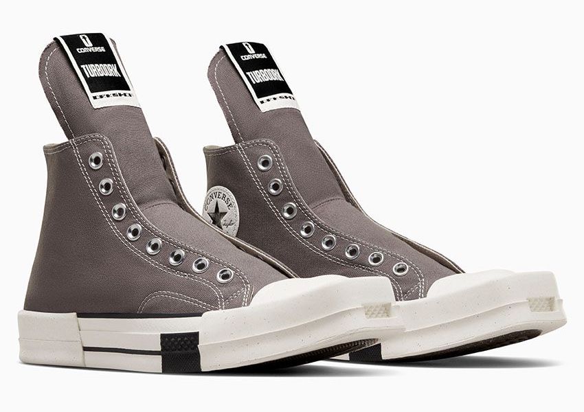 日前匡威和 Rick Owens 的 DRKSHDW 又带来了一款新作。它延续了双方合作鞋型 TURBODRK Chuck 70 的基本造型,包括夸张的鞋舌和独特的鞋头设计,而新款的特别之处在于采用了无鞋带设计,鞋带孔作为装饰元素保留了下来,令鞋款的造型更显特别。它会有多款配色。