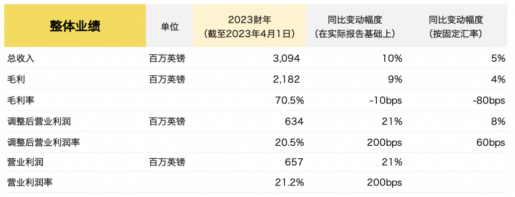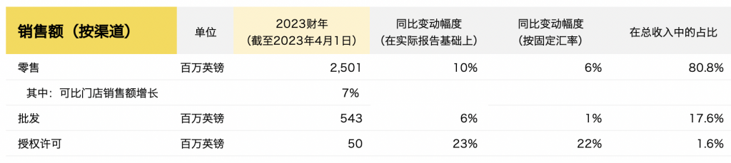 截至4月1日,Burberry 2022/23财年的主要财务数据如下: