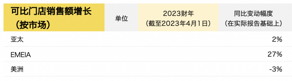 由于中国大陆在第一季度和第三季度受新冠疫情影响,亚太地区全年可比门店销售额的增长出现了波动。