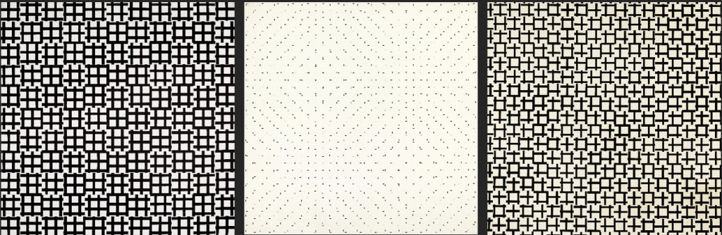 上图:《2短线纹理0°-90°》,1971年,1974年,1972年,弗朗索瓦·莫尔莱