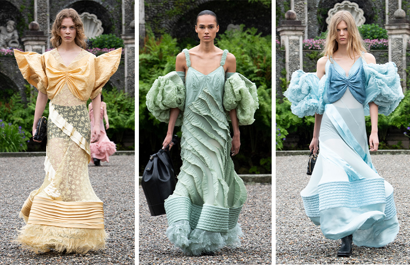时装秀的最后是一组风格柔美的礼服。“到最后,美人鱼变成了一朵花。”Nicolas Ghesquière 解释道。