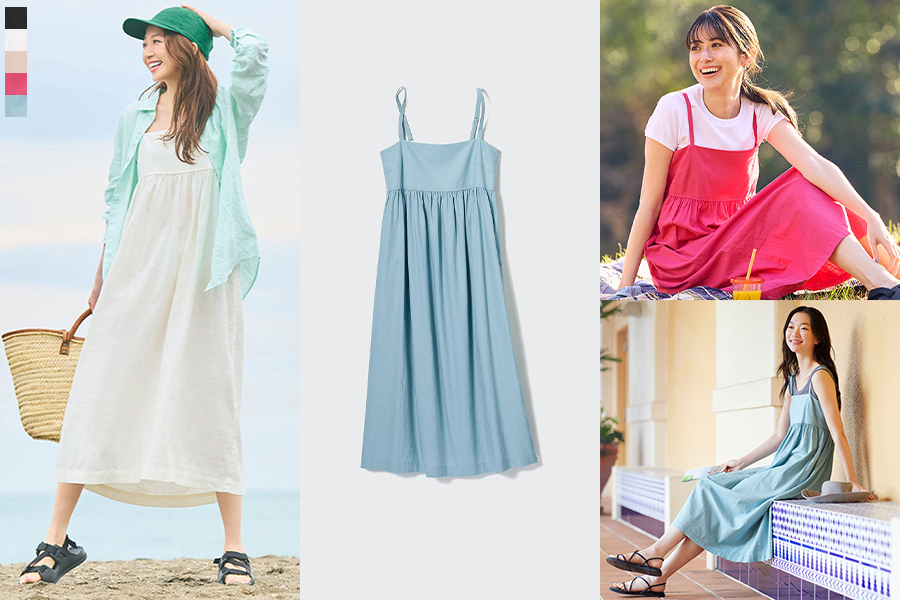 而下面这款麻混纺抽褶吊带连衣裙是小红书上人气很高的单品,高腰设计,后身有打褶细节,加上蓬松的裙身,跑不掉的甜美假日氛围。可以单穿,可以内搭 T 恤,或外搭衬衫,按大家的喜好,搭配出不同风格的造型。