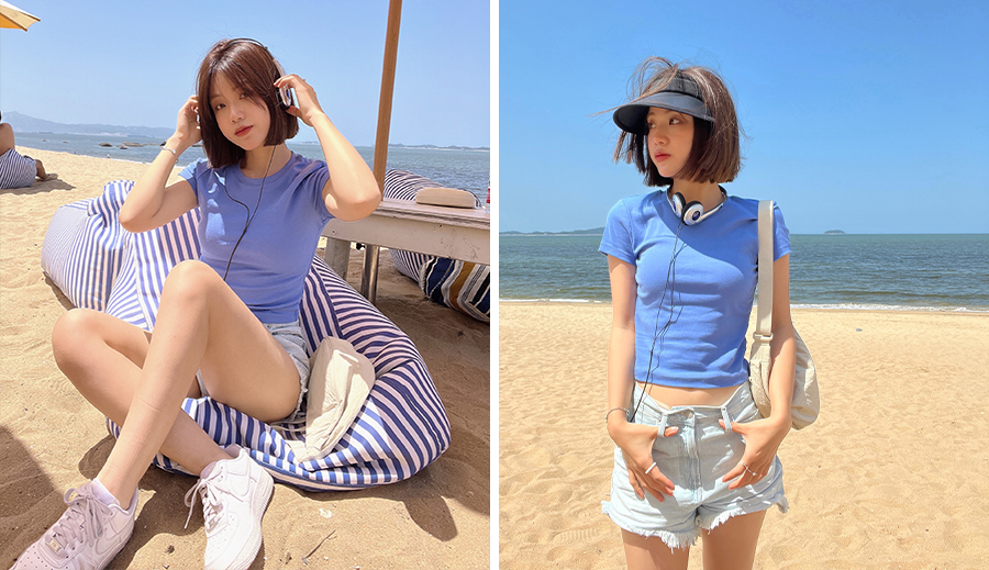 夏日音乐节在穿搭选择上,除了舒适性,青春感也是必要的考量点,选一款让人眼前一亮的 T 恤(比如条纹款、露腰版型、多巴胺风的彩色款等),搭配宽松透气的裤子,打造兼顾舒适性和时髦度的造型。