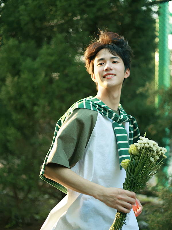 男生则可以选择少年感廓形 T 恤,简单搭配牛仔裤,清爽大男孩。