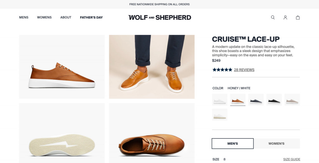 此后,Justin Schneider 制作了一双原型鞋履,并穿着它们完成了5公里赛跑,在发现全程脚感良好后,他将鞋履及品牌 Wolf & Shepherd 推向了市场。随后,除男鞋外,品牌的品类也扩展至配饰等。品牌配饰的价格多在15美元至95美元不等,鞋履的价格多在149美元至289美元不等。