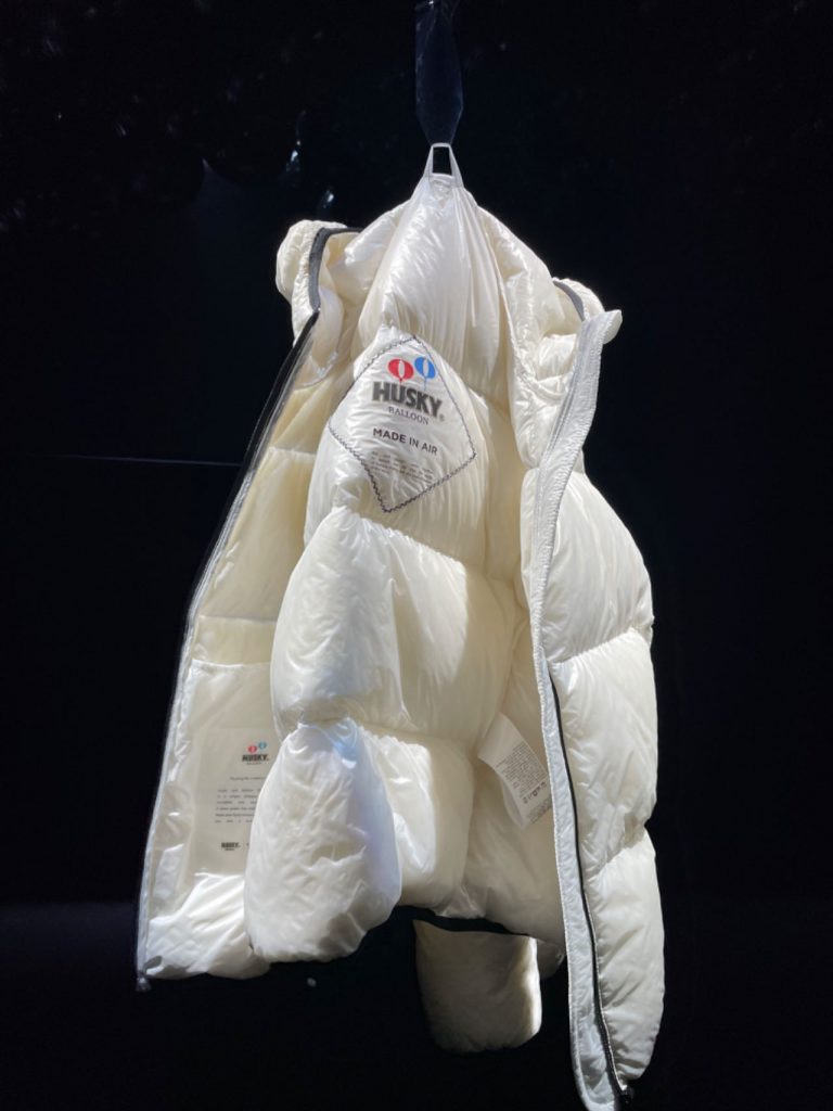 英国羽绒服品牌HUSKY展出了一件使用极其轻盈的羽绒制成的作品(下图),名为“12个月羽绒服”( “12 Months Jacket” )。“这件作品重量极轻,重新定义了重力,但确是实实在在可以穿着的!” 品牌方表示。
