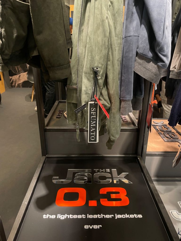 品牌在本届 Pitti Uomo 上展示了最新的「 0.3 胶囊系列」。采用超轻小山羊皮绒面革和无缝拼接技术, The Jack Leathers 号称创造了“有史以来最轻的皮夹克”(下图)。