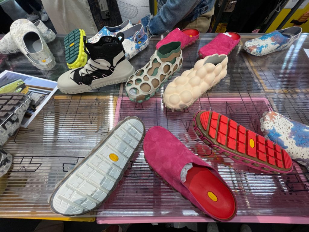 意大利橡胶鞋底生产商 Vibram 带来了“可拆卸替换”的 OrthoLite ECO 鞋床,吸引观众在现场玩起鞋子组装的“乐高式”游戏。