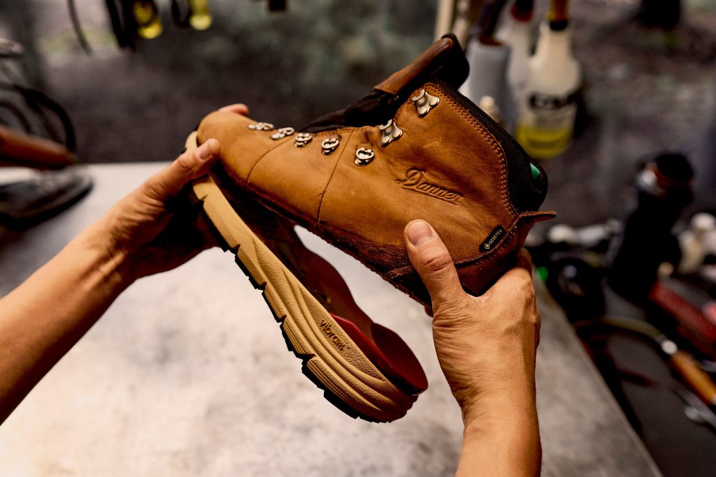 比如,美国鞋靴品牌 Danner 将鞋底用在 Mountain 600 Leaf GTX 鞋款上。这款鞋底专为山地设计,使用了 Vibram Megagrip 大底和 Vibram SPE 中底,能够满足户外使用性能。同时,通过 Danner’s Recrafting Program 计划,这款鞋支持后续更换部件(下图),以延长使用寿命,做到减少碳足迹。