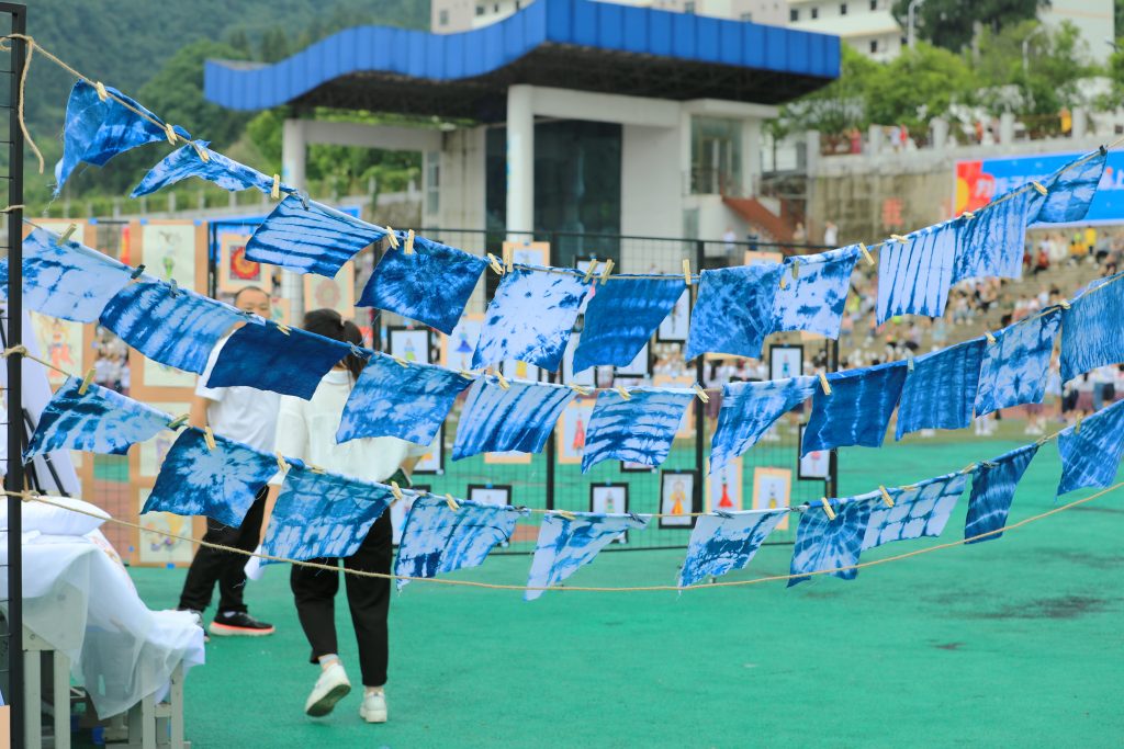 贵州省铜仁市江口县第二小学的孩子们,身着亲手参与设计的特色时装,自信地走在操场的T台上。操场的另一边,展示着他们制作的手工、绘画、扎染等形式多样的艺术作品。