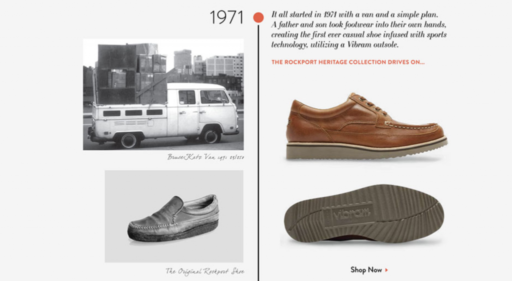 Rockport 拥有50多年的历史,由Saul 和 Bruce Katz 父子于1971年在马萨诸塞州创立。Saul Katz 曾担任总部位于新罕布什尔州的鞋业公司 Hubbard Shoe Co. 的总裁,该公司于1960年代末停业。Rockport 以其胶底休闲鞋而闻名,是在其他制鞋商仍专注于皮底鞋的时代中首个向市场推出胶底鞋履的公司。此外,Rockport 还销售运动鞋、船鞋和凉鞋等鞋款。
