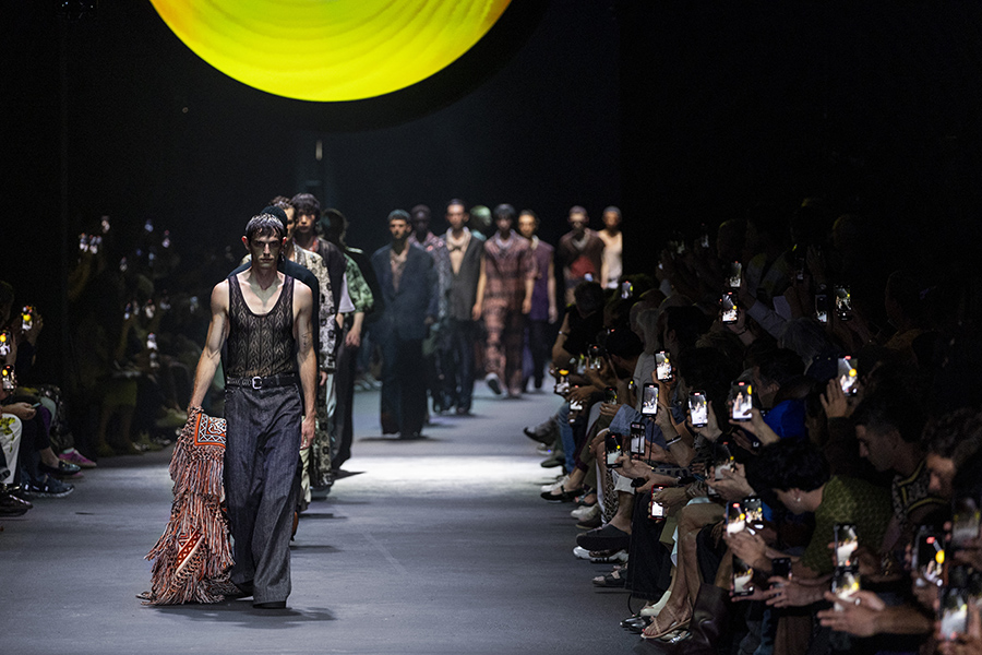 从寓言图册出发,设计师从更多渠道继续关于图像的探索,ETRO 标志性的复古文艺印花以及弯月抽象图案等,丰富了关于图像的叙事。