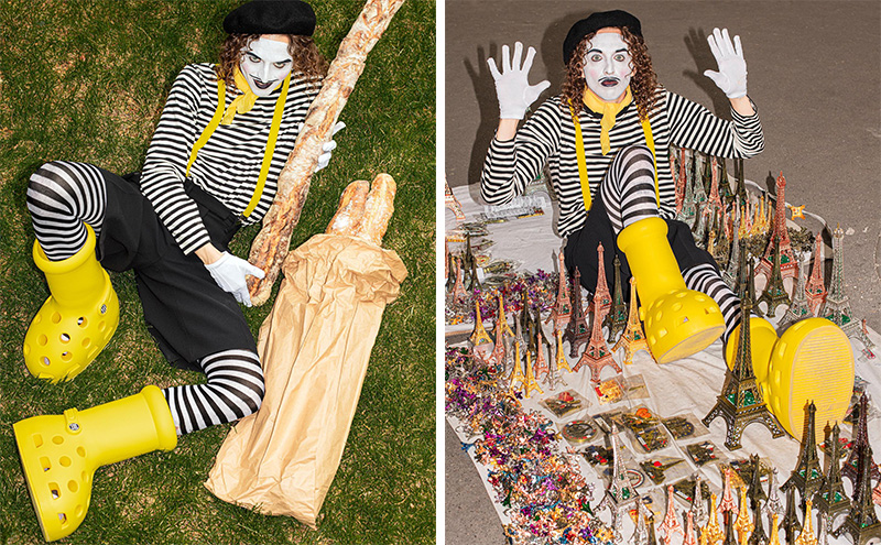 爱沙尼亚说唱歌手 TOMM¥ €A$H 夸张的看秀造型成为近日男装周的一个话题。 6 月 22 日,他在 Rick Owens 秀场头排穿着了疑似 MSCHF 和 Crocs 合作的洞洞鞋版大黄靴。随后 MSCHF 官方 Instagram 也认领了这一鞋款,不过并没有确认这是合作款,还是单纯的恶搞。