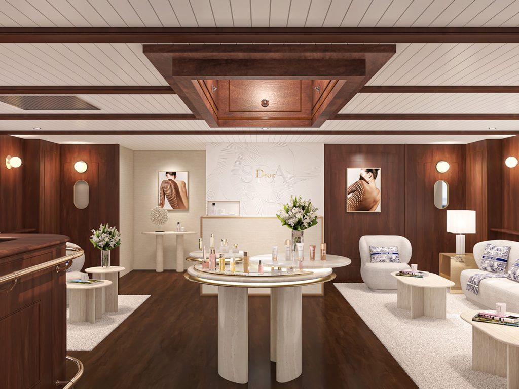 Excellence 豪华游轮将沿用 Dior 标志性的茹伊印花(Toile de Jouy),主打蓝色和米色,辅以经典的 Dior canework 压纹,打造一个放松充能的绝佳空间。游轮共有四件优雅的单人理疗舱和一间带有休息室的豪华双人舱,并配有迪奥精选护肤及香氛系列。