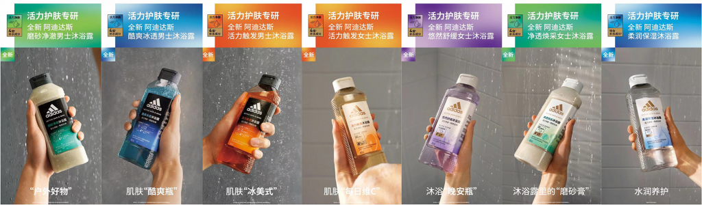 6月30日,阿迪达斯个人护理品牌推出全新活力净肤系列沐浴露。与过去常见的蓝黑包装的“三合一”男士沐浴露不同的是,新系列针对男士和女士不同的肌肤与体味特点,以及不同的运动场景,共包含7款产品。