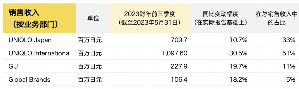 截至5月31日,迅销集团2023财年前9个月的主要财务数据如下: