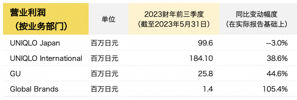 尽管截至2023年5月31日的9个月里,UNIQLO优衣库品牌日本市场的利润出现萎缩,但预计该部门将在下半年和整个财年实现更高的收入和稳定的业务利润,并在2023年6月至8月的第四季度实现更强劲的复苏。