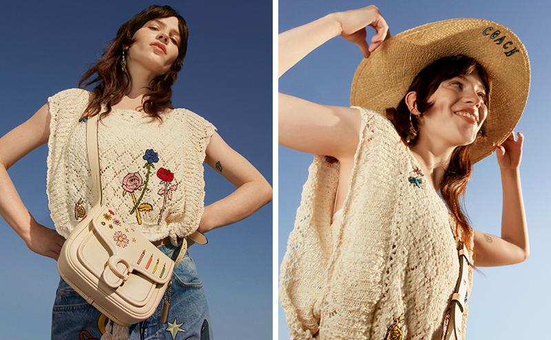 Coach 发布了 Observed By Us 合作系列,这来自品牌和洛杉矶插画师兼设计师 Jessica Herschko 及演员 Kirsten Dunst 的合作。 系列有成衣、手袋、鞋类及配饰等产品,其中 T 恤、卫衣、碎花连衣裙和牛仔裤等经典单品以纯手工制作的方式做了全新表达,此外系列下的羊毛露脐上衣、背带裤和草帽等单品上还有 Herschko 的原创手绘插图。