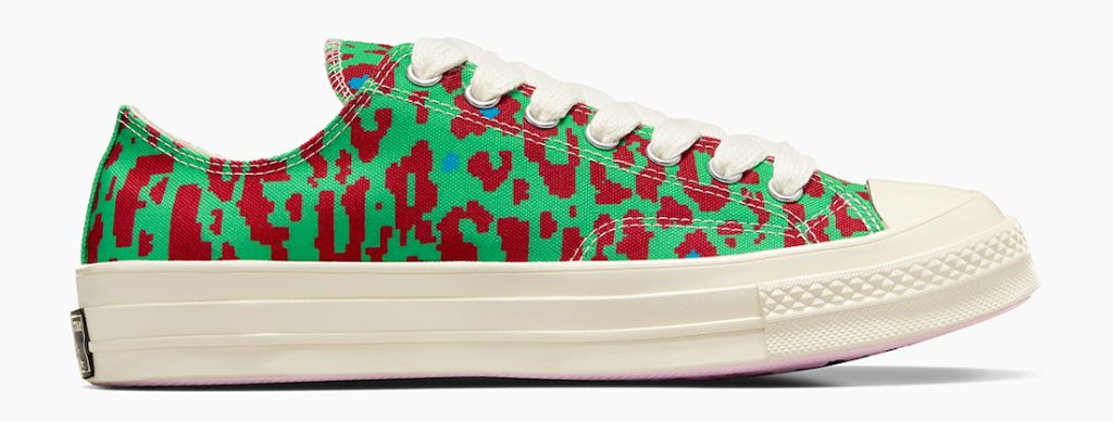 Tyler, the Creator 的 GOLF le FLEUR* 和匡威又有新合作,这次是围绕 Chuck 70 展开的,合作鞋款主打数码豹纹图案,仔细看可以发现豹纹中隐藏了 GOLF le FLEUR* 的 logo。另外它的鞋底也有特殊设计。 双方为它打造了 4 款鲜艳的配色,系列预计会在 7 月 20 日上市。