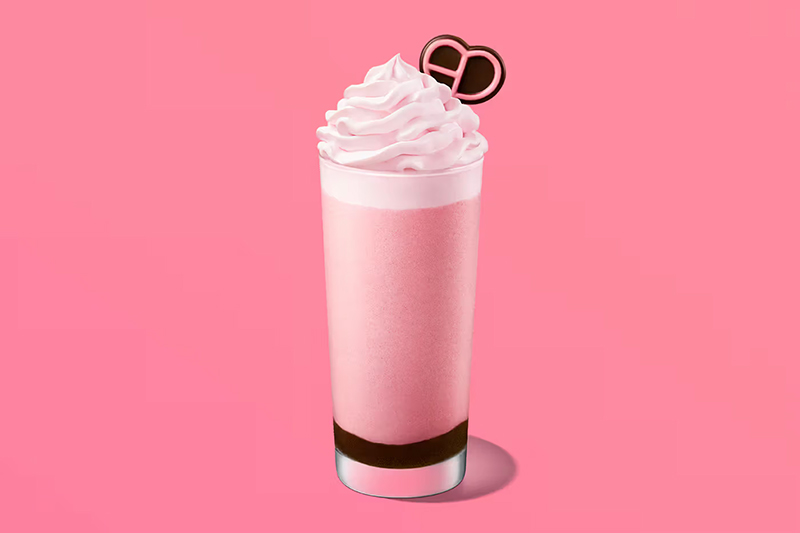 同时在这 9 个发售市场,星巴克还会在门店提供全新的主题星冰乐——BLACKPINK 草莓巧克力奶油星冰乐,它同样也是黑色和粉色的组合。它融合了草莓糖浆、黑巧克力酱、燕麦奶和巧克力碎,并加上鲜奶油,最后插上心形巧克力。