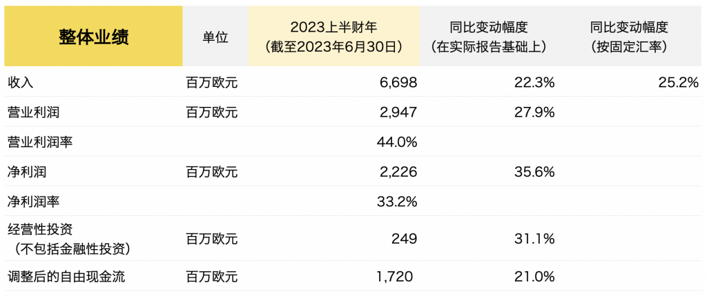 截至6月30日,爱马仕2023上半财年的主要财务数据如下: