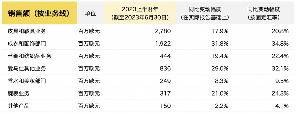 截至2023年6月底,所有业务线都保持了稳健的发展势头,这也是爱马仕品牌巨大吸引力的基础。