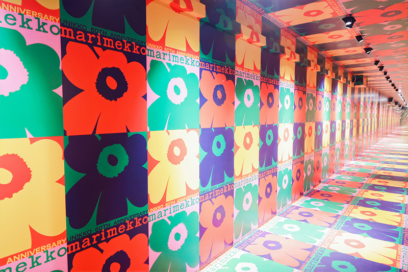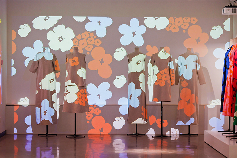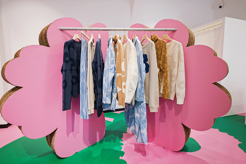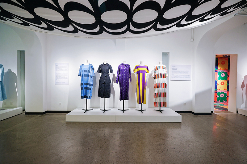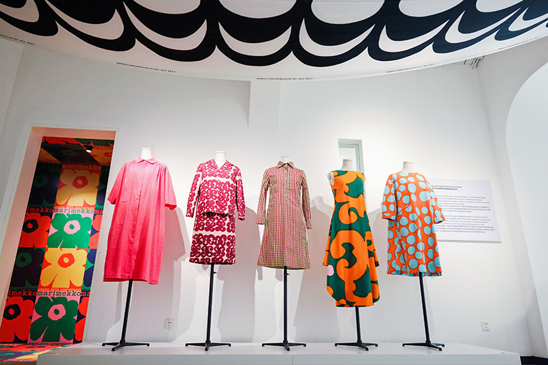 这次展览全面展现了 Marimekko 标志性的印花艺术,观众可以在当中沉浸式地感受色彩缤纷的印花,并了解经典印花背后的故事。此外现场还通过光影和装置等结合,呈现了 Marimekko 经典印花连衣裙产品数十年来的演化,这也体现了品牌独树一帜的品牌文化,以及它所代表的积极热情的生活方式。