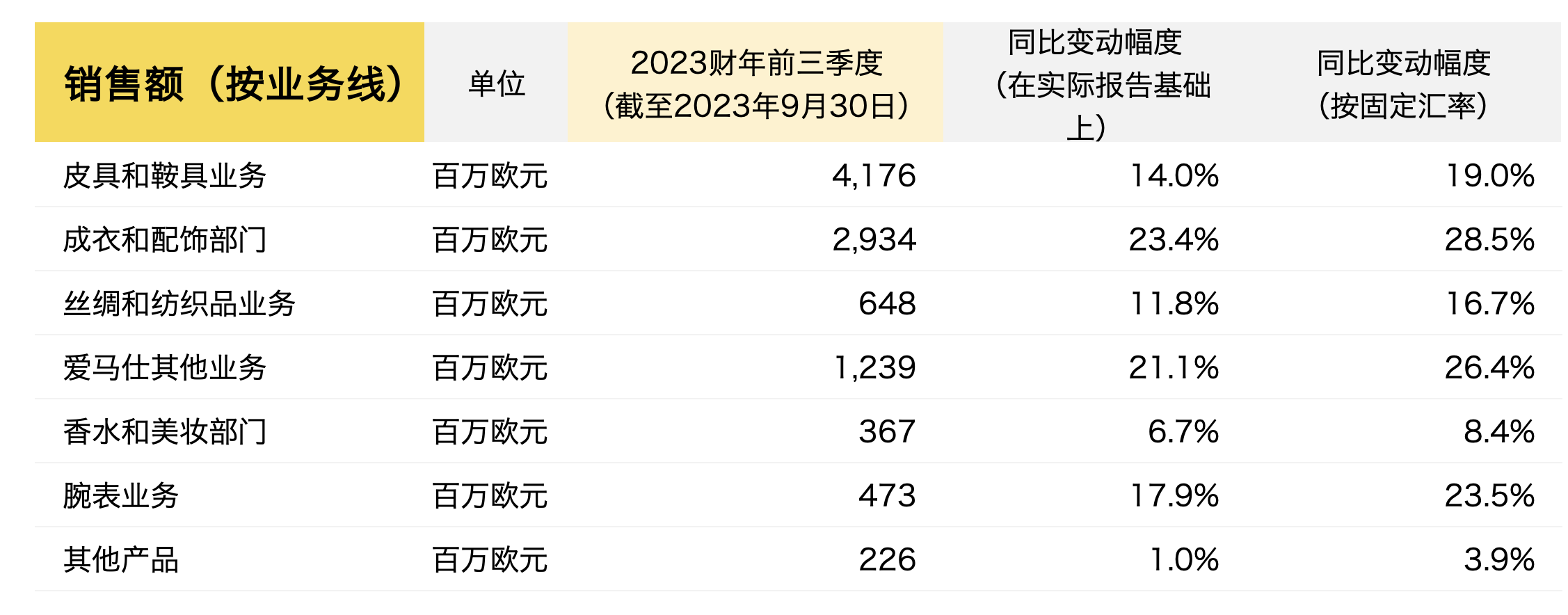 不过,第三季度爱马仕皮具和鞍具业务销售额同比增长15.8%(按固定汇率计),比上半年有所放缓 —— 今年一季度同比增速为19%,二季度同比增速为23.2%。