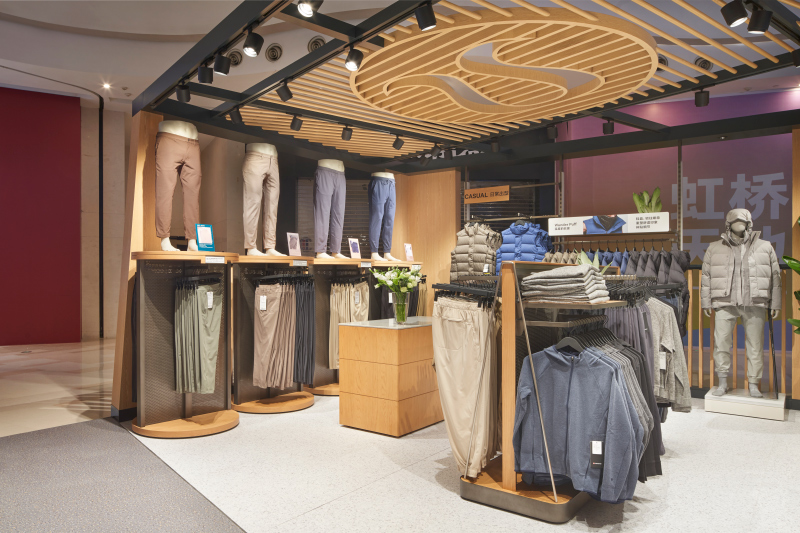 日前 lululemon 在上海虹桥天地一层开出男装快闪空间,这是品牌在国内首个男装快闪空间。 空间里陈列了秋冬跑步、训练及日常穿着产品,当中包括 ABC 男裤系列和 Wunder Puff 羽绒系列等。整个空间将持续到 2024 年 1 月 4 日。