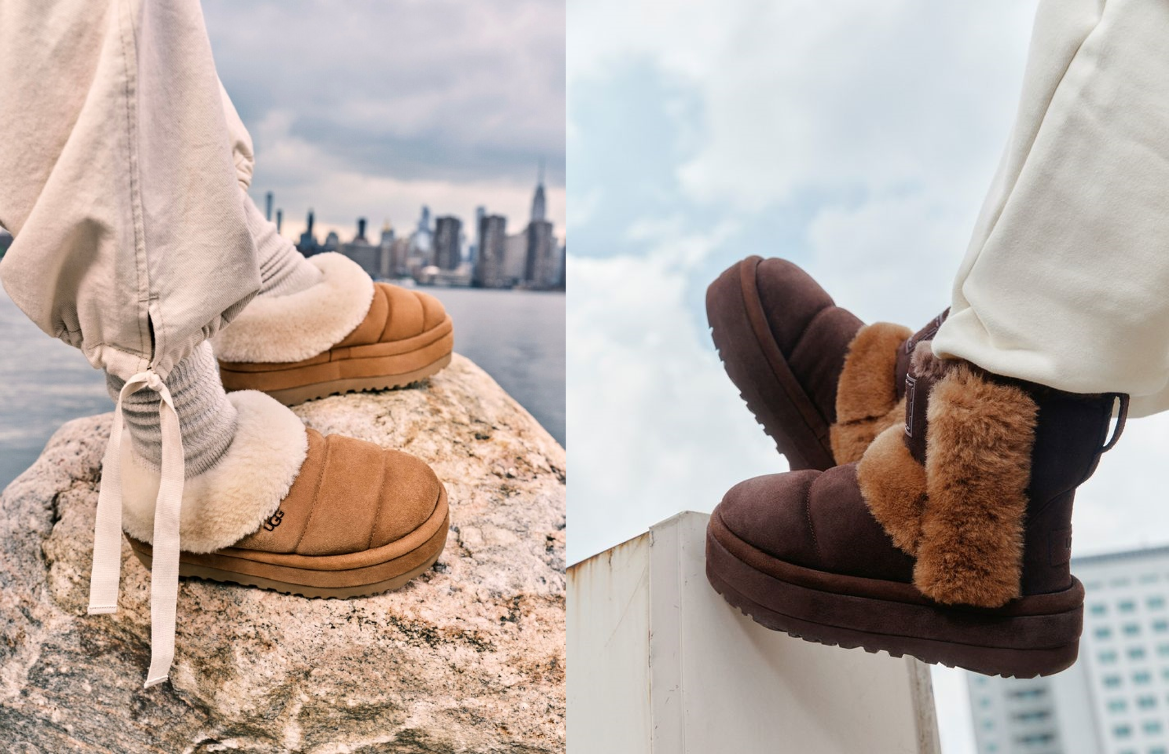 上图:UGG 新款 Tazzlita 欧包鞋(左)和 Chillapeak 厚底欧包靴(右)