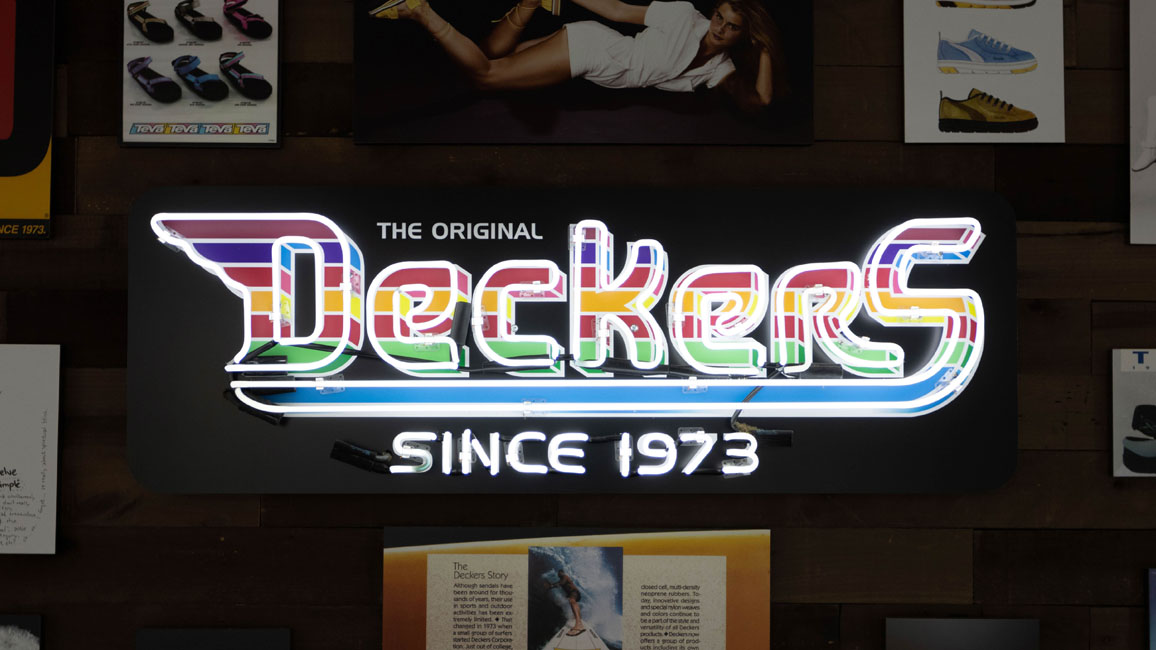 1973年, 加利福尼亚大学圣芭芭拉分校的一对校友 Doug Otto 和 Karl F. Lopker 在加州创立了Deckers,最初生产冲浪所用的人字拖,公司名字来源于夏威夷人对人字拖的称呼“deckas”。