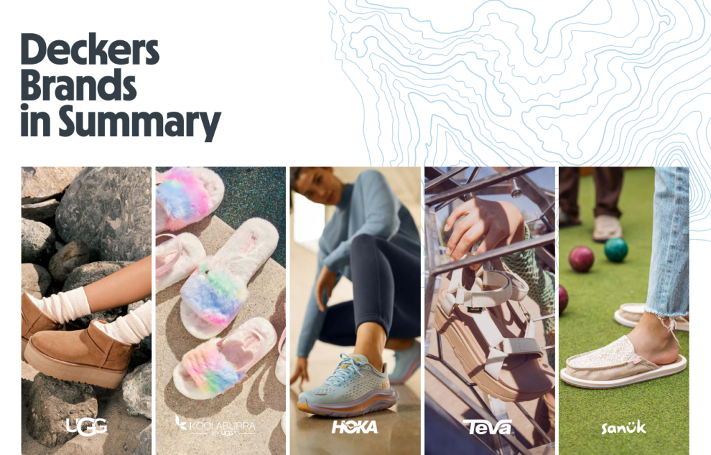 上图:Deckers Brands 的五大品牌 — UGG(1995年收购)、Teva (2002年收购)、 Sanuk(2011年收购)、HOKA(2013年收购)、KOOLABURRA BY UGG(2015年收购)