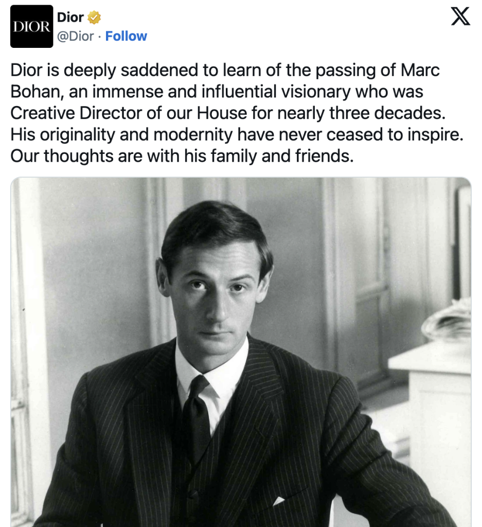 DIOR品牌任期最长的艺术总监 Marc Bohan 去世,享年97岁