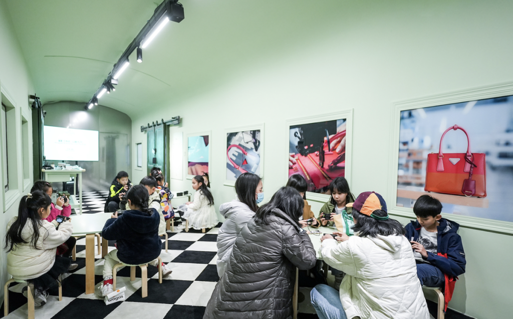 意大利奢侈品牌 Prada(普拉达)在上海星美术馆举办的《Pradasphere II》展览开设儿童创意工作坊特别项目。 本次活动以“以眼为尺”为主题,带领儿童与青少年认识照相机、学习如何取景拍摄,并制作自己的影集。