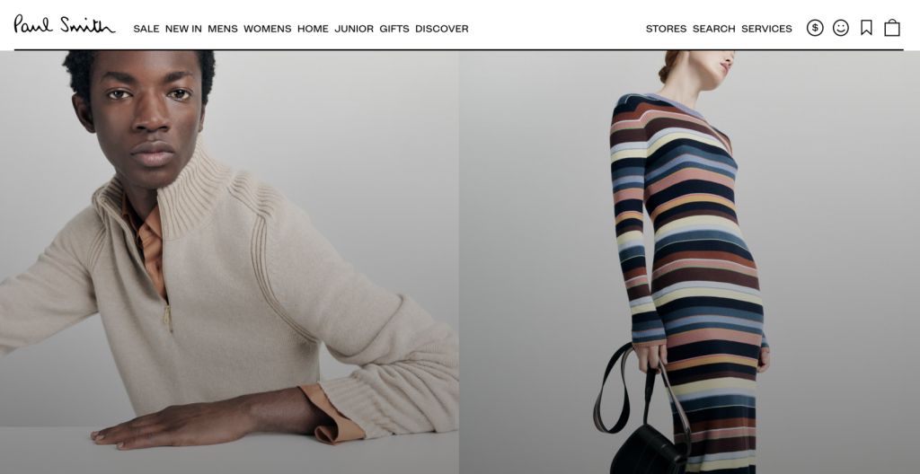 2023年4月,Paul Smith 通过与芬兰搜索技术服务商 Klevu 和伦敦网站设计公司Limesharp 的合作,刷新了其数字商务体验。短短八周里,品牌官网的电商转化率(ecommerce conversion rate)提高31%,搜索收入(revenue from search)增长74%,每次会话价值(per session value)提升了26%。其中,Klevu 的类别商品陈列解决方案使得男士类别页面转化率提高了34%,每次会话价值提高了20%:女士类别页面转化率提高了49%,每次会话价值提高了15%。