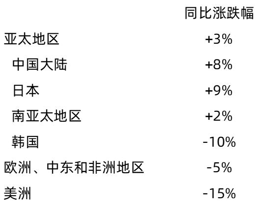 可比门店销售额同比下降4%,其中,主要市场——中国大陆、日本和南亚太都取得正增长:
