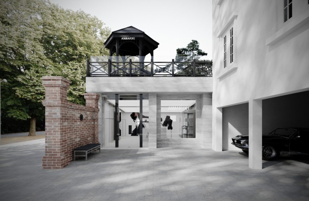 服装品牌 ANNAKIKI(杨子)在上海富民路保罗花园开设上海首家独立旗舰店。以原始的顶层庭院为出发点,通过融合品牌的服装主色系黑色与玻璃、天然洞石等质感材质,达成传统与创新之间的融合。
