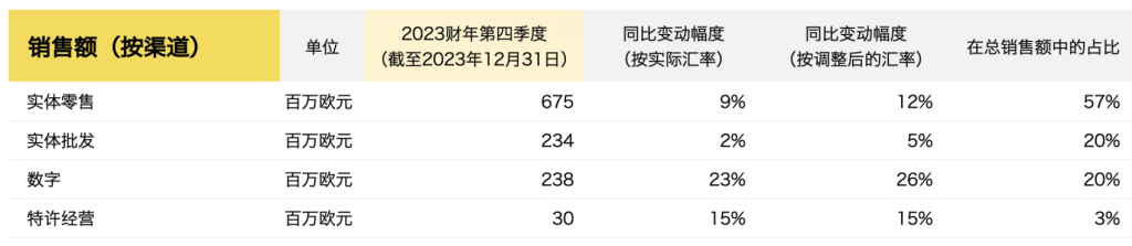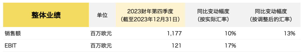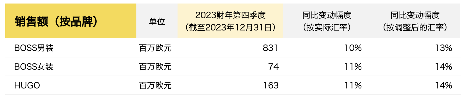 截止12月31日,Hugo Boss 2023财年第四季度的主要业绩数据如下: