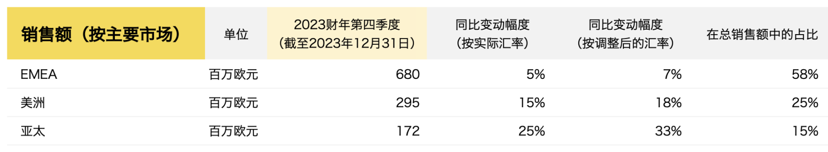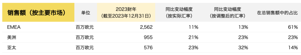 EMEA:德国和法国等关键市场强劲增长,新兴市场实现了两位数增长。