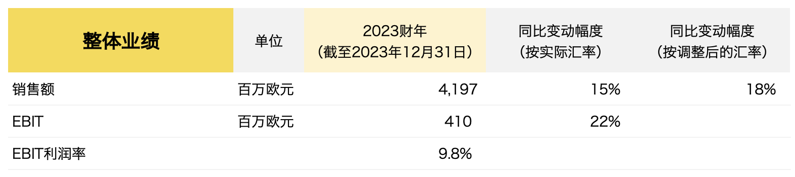 受第四季度业绩的推动,全年销售额同比增长15%,达到创纪录的41.97亿欧元。在此过程中,公司获得了进一步的市场份额,并提前两年实现了原先设定的到2025年达到40亿欧元销售额的目标。(*该目标由集团在2021年6月的投资者日上提出)