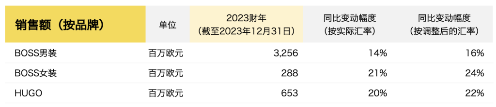 截止12月31日,Hugo Boss 2023财年的主要业绩数据如下: